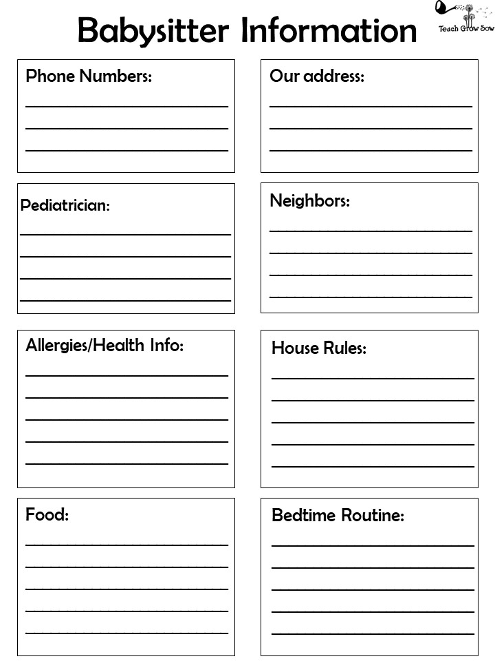 Heading out for the night and leaving the kids with a sitter? Keep all important information ready with this babysitter form.
