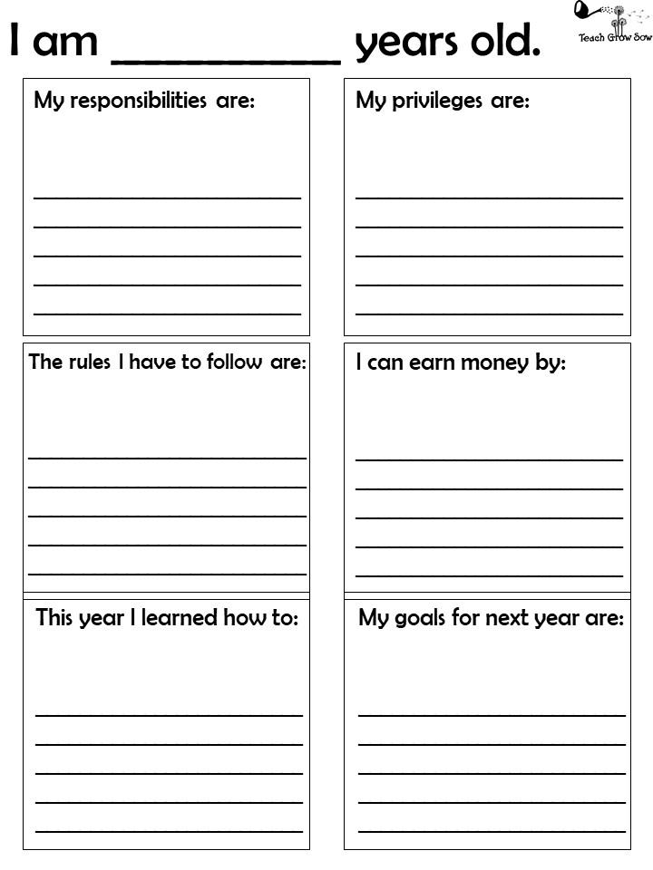 Use this template to create a fun yearly tradition to help children organize their responsibilities, privileges and goals.