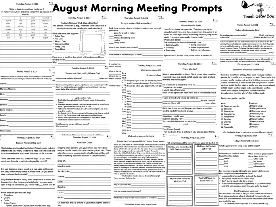 Use these pages for a first activity of the day (aka, “Morning Meetings”). Each one varies in style a bit to keep students on their toes and is designed to get in just a bit of thinking without overwhelming students with work.