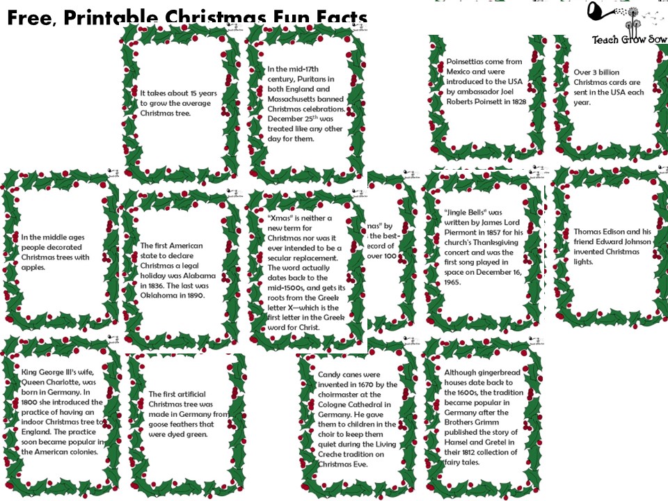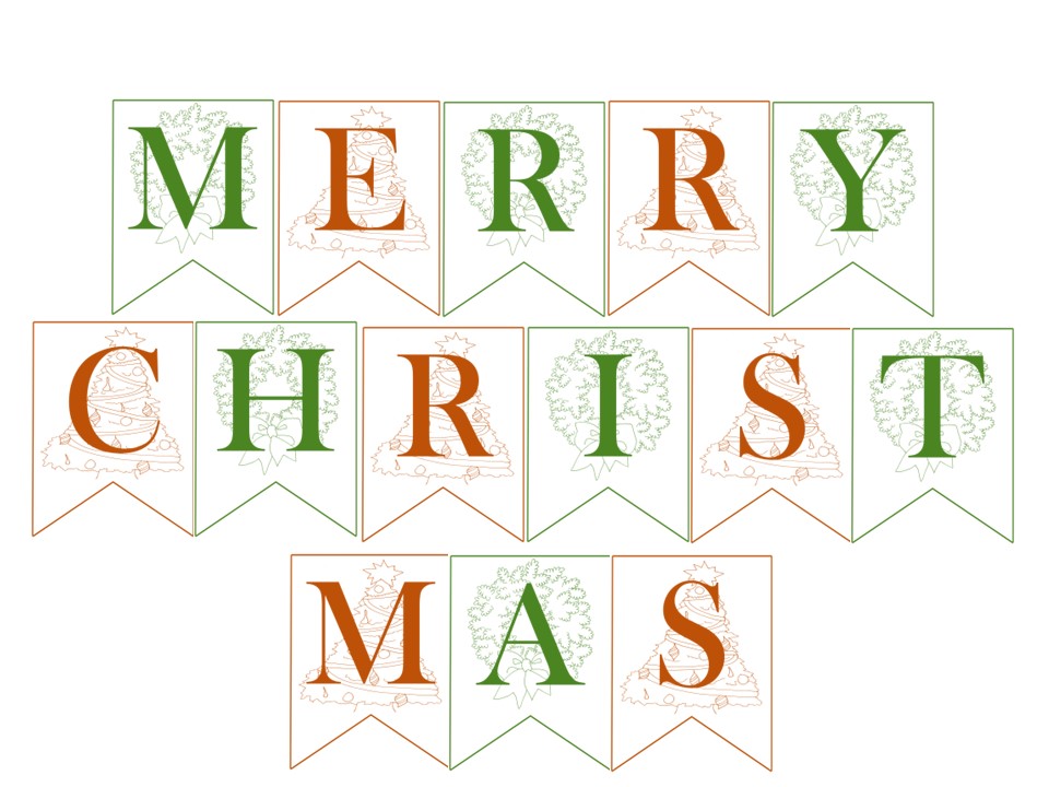 Print these pages on alternating red and green paper, cut, punch holes in the top corners, and string yarn through to make a festive banner.