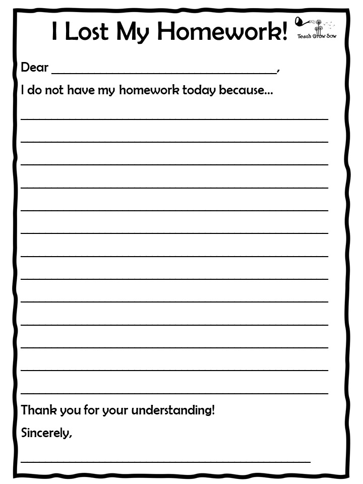 Losing homework can be very stressful for young children. To help put them at ease, let each child fill out one excused homework pass at the beginning of the year, to keep in their file for when they want to redeem it. If you want to get a bit silly, read students a book such as Alexander and the Terrible, Horrible, No Good, Very Bad Day, by Judith Viorst, or Arnold in a Pickle, by Marc Brown. Encourage them to make up the wildest, most extravagant excuse for their lost homework (making it clear that this is intentional fiction, not lying, since you are in on the joke). The creative writing will well make up for one day’s lost homework.