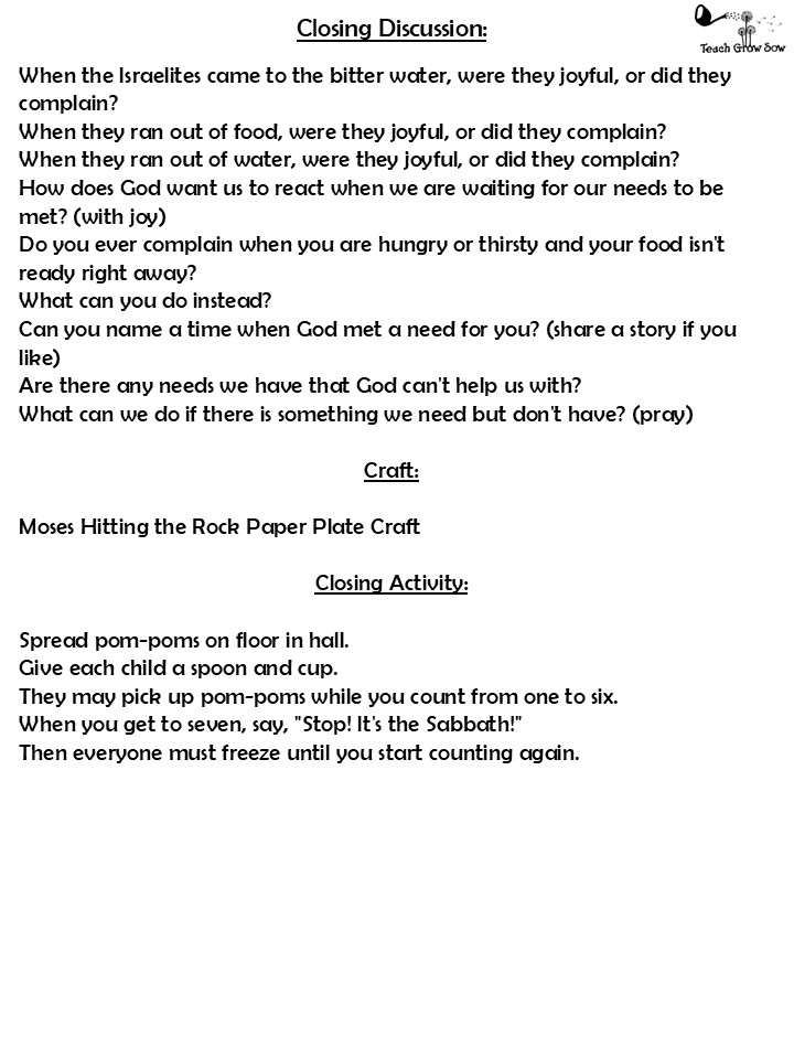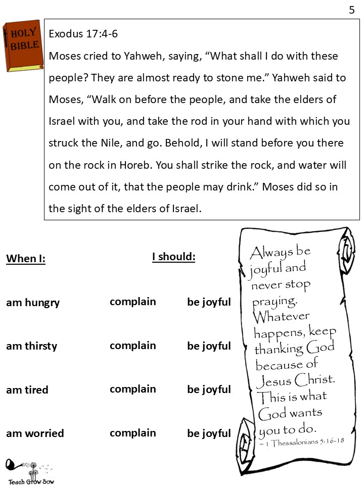 When they finally found water, they rushed to drink it, but it was no good for drinking, like seawater. The people named the place Marah, which is Hebrew for bitter. The people complained to Moses, asking him what they would drink.