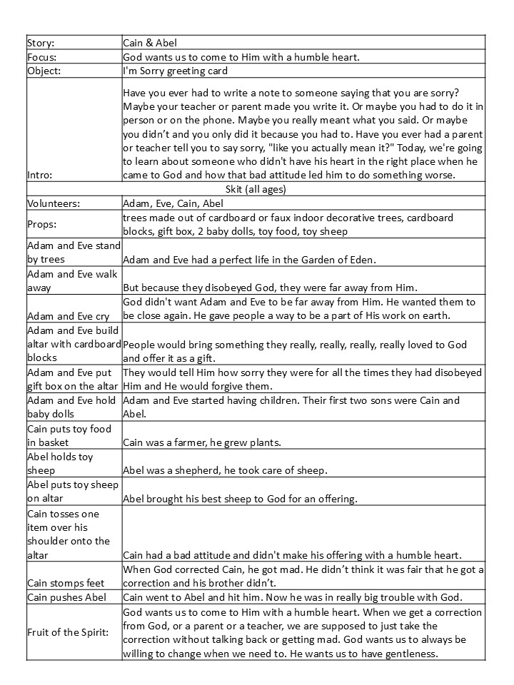 Originally, there were only two jobs: farmer or shepherd. There were no bankers, police officers, actors or teachers. Adam and Eve and their family needed food, clothing and shelter. Cain was a farmer, he grew plants. Abel was a shepherd; he took care of sheep. Both jobs were important, but sometimes people feel like someone elseās job is easier, or more admired by others, and feel jealousy.