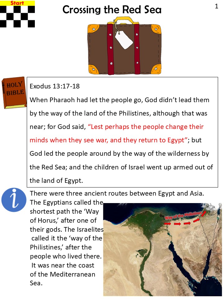 The Pharaoh ordered six hundred of his best chariots to chase after the Israelites. The Israelites traveled on foot, with children and old people. They carried all their belongings. It took very little time for the Egyptian soldiers to catch up to them. Moses and the children of Israel found themselves pinned between a frightening army approaching in the distance, and the Red Sea-too wide and too deep to get across.