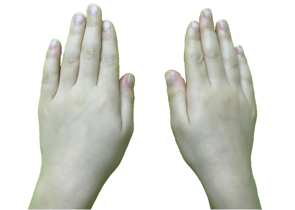 Cutting with scissors involves two distinct motions: bringing the thumb toward the other four fingers, and pulling the thumb and other four away from each other. The latter is the one children struggle with more often. Pause for a moment and do these motions several times in the air in front of your face.