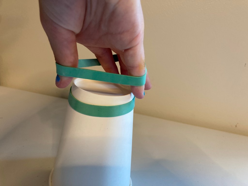 For struggling older children who need to catch up their fine motor skills more quickly, find rubber bands just the right size to require some effort when placed around fingers and opened up. Make a game where they have to go on object, such as doll’s head or small ball. A paper towel roll or cup can be a good size. Play together, taking turns.