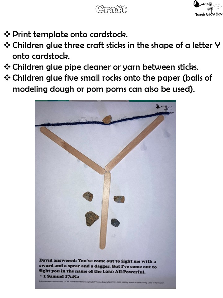 So, David took off the armor and gave it back to Saul. He picked up his shepherd’s staff and his slingshot. David walked down to the river and gathered five smooth stones.