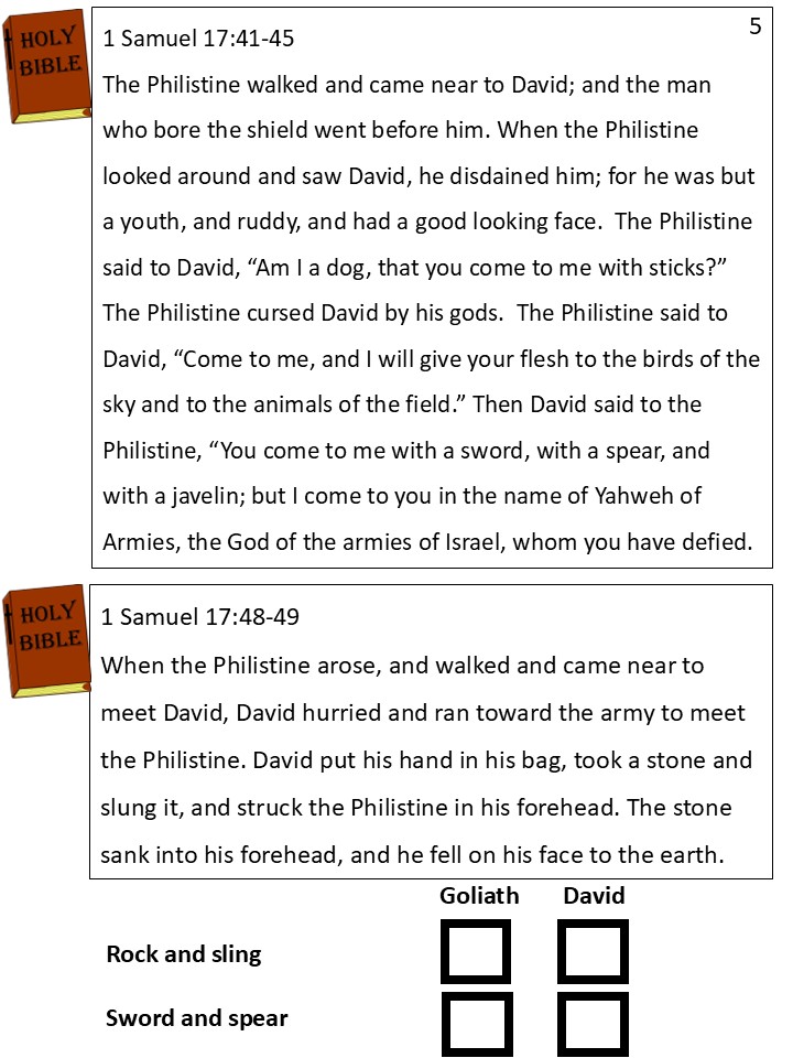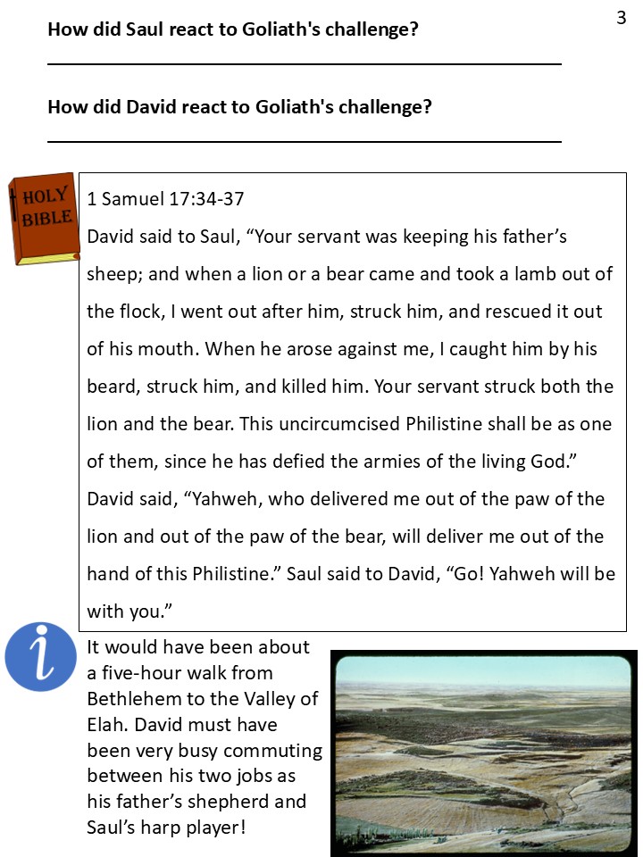 But David persisted. “I have killed a lion and a bear while protecting my father’s sheep. If God helped me to do that, He will help me to fight Goliath.”