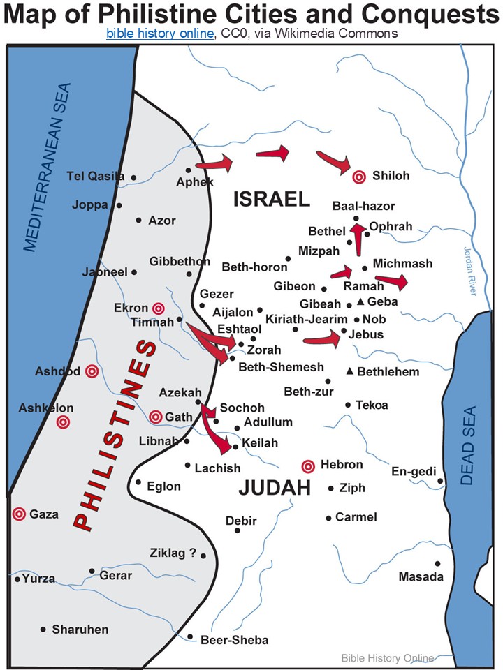 The Philistines were Israel’s neighbors to the west. A group of people who traveled the waters of the Mediterranean Sea, they had earned themselves the nickname, “The Sea Peoples.” The Philistines lived in cities near the coast, but as they traveled further inland, they felt like the Israelites were in their way and challenged them to fight.