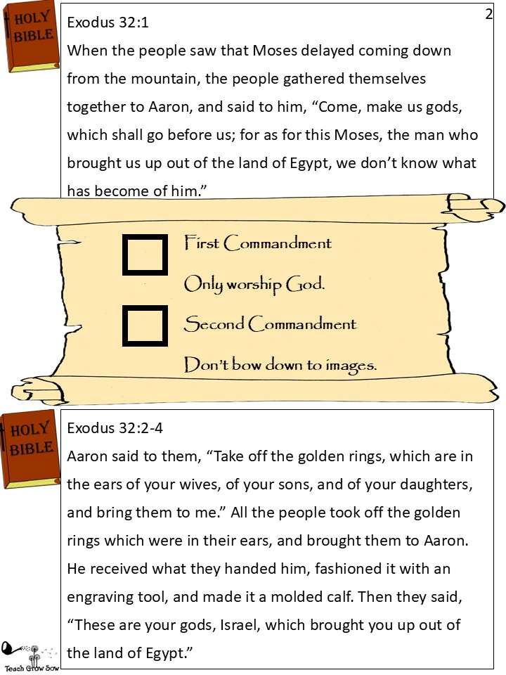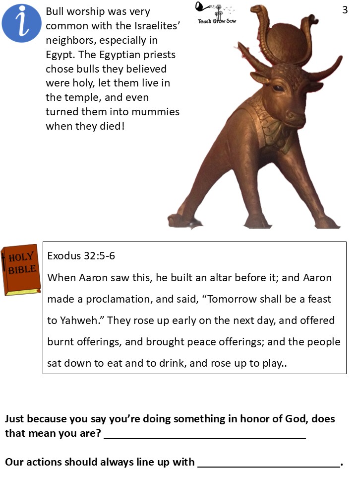 The Egyptians had worshipped statues of animals and humans. They made them out of gold and stone, bowed down to them, and acted wild when they worshipped them. The Israelites thought perhaps a statue like that was exactly what they needed.