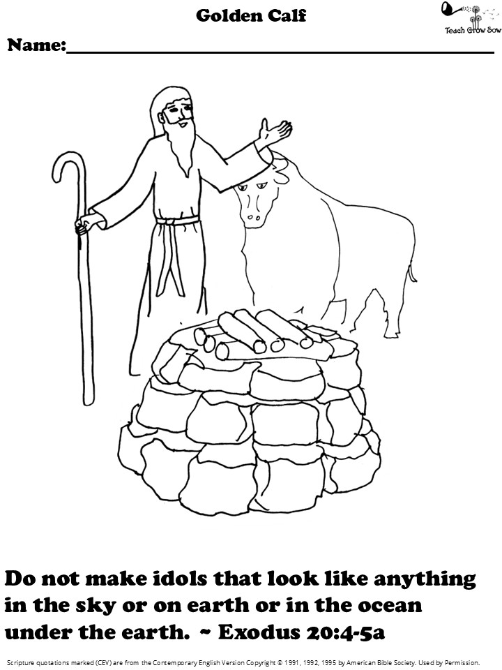 So, the Israelites took off their gold earrings, bracelets and necklaces. They placed them in a giant pile in front of Aaron. Aaron worked hard all night, molding the gold into the shape of a young bull.