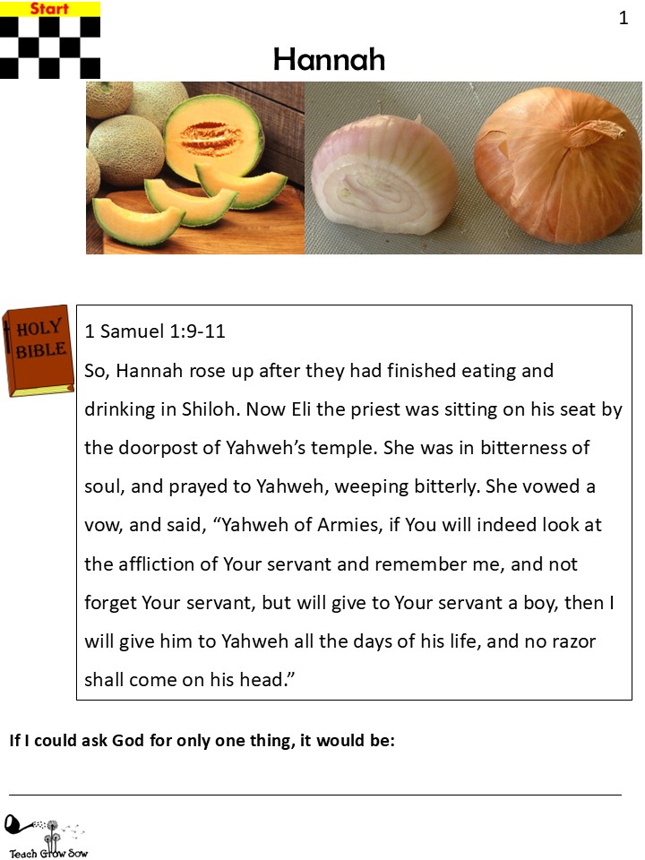 Brokenhearted Hanna cried as she prayed to God. “Lord, I know that you have all the power in the world and can do anything and I want to serve you. I want a baby so badly. Please let me have a son. I will have him become a Nazarite.”