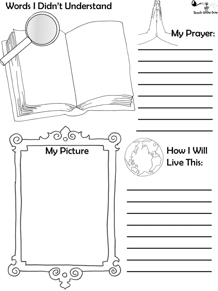 Use these pages to create sermon notes for children when attending adult worship. Print the first two pages double-sided for younger children. Print the second two pages double-sided for older children or teenagers.
