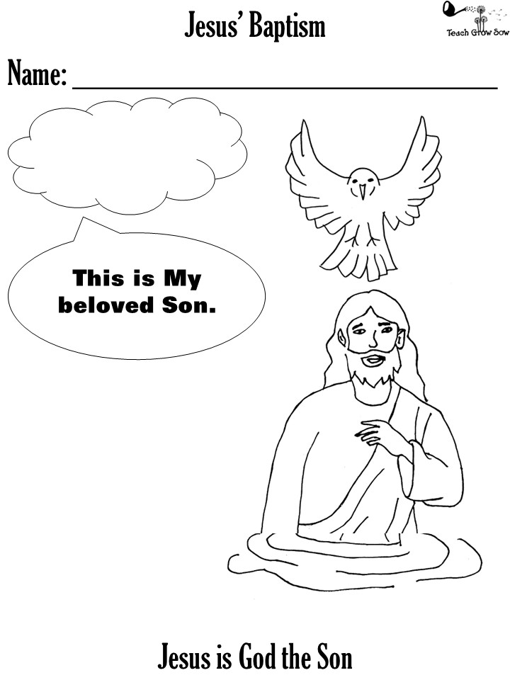 John dunked Jesus under the water, just like he had done with everyone else. As He came up from the water, the sky opened and he could see the Holy Spirit coming down on Jesus like a dove. Then God the Father spoke, saying, “This is my precious Son. I am so very pleased with Him.”