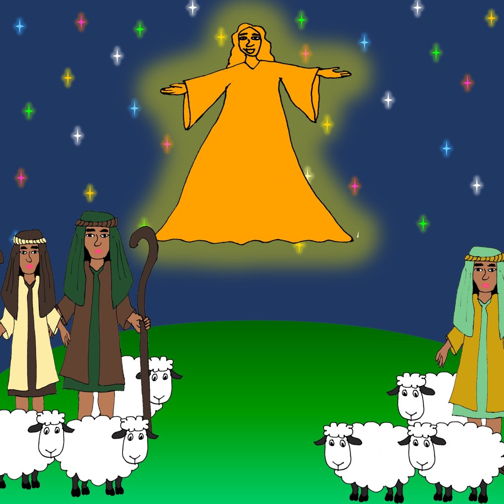 Suddenly the night flashed bright like lightning, but the skies were clear, and the shining rays came from an angel of God. Terrified, the shepherds shielded their eyes as they tried to see who was there.