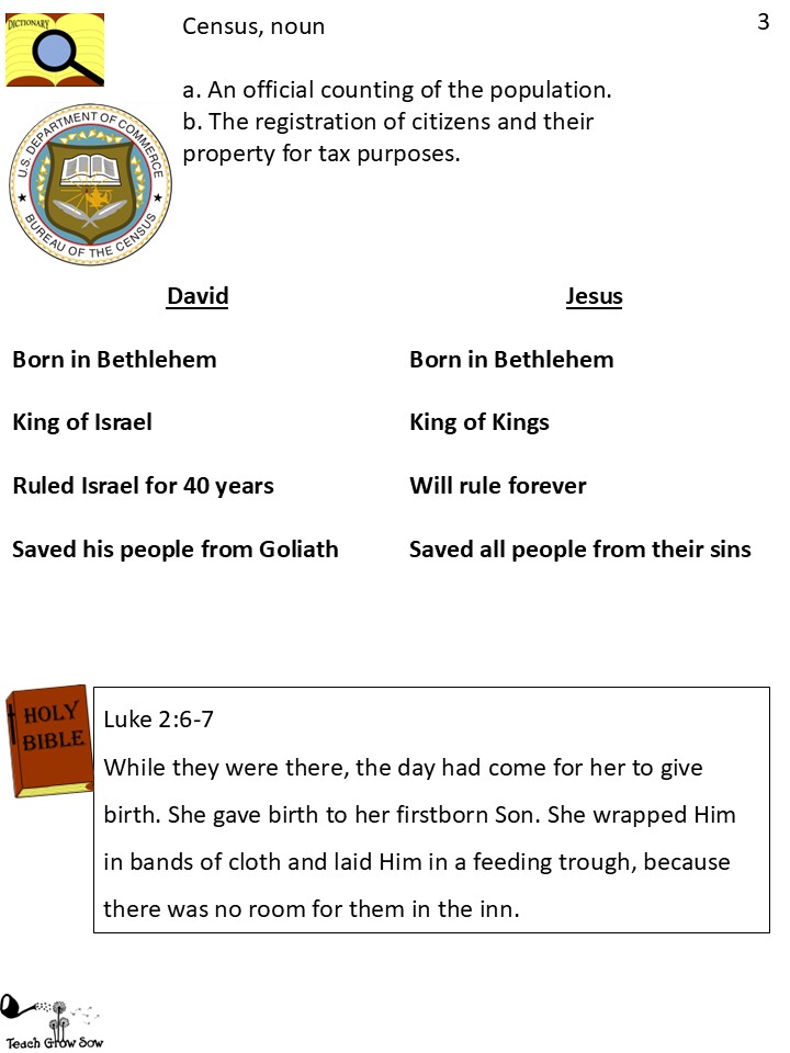 Joseph and Mary got married in the town of Nazareth, in the land of Galilee, where she lived. But shortly after, the Emperor Augustus gave an order to all the people in Judea. He wanted an organized list of all their names, so he could charge them taxes for living in the land that Rome had taken over. Everyone would be listed by family, which meant they would all register in their hometowns. Joseph’s family was from Bethlehem, the little town that had been his ancestor King David’s hometown. So Mary and Joseph had to travel there together, a journey of five days. It was almost time for baby Jesus to be born, and Mary was in no condition to travel, but no one could say no to the Romans.