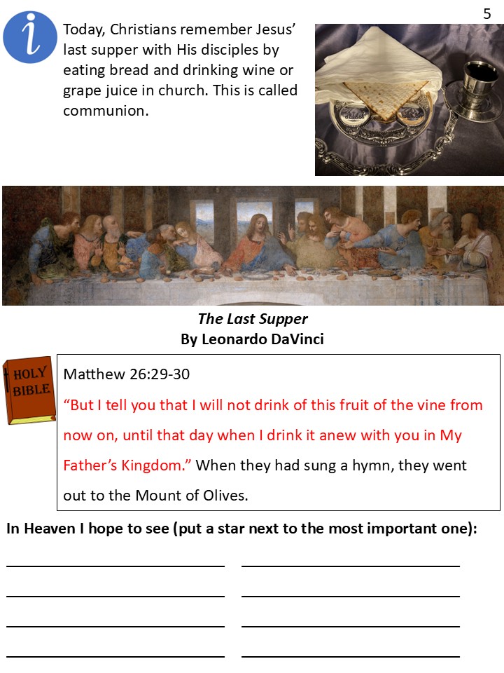 Jesus looked with love at the remaining eleven disciples. āThis is the last meal I will eat on earth. The next time we eat together will be in My Fatherās kingdom.ā Then they sang a hymn and walked to a garden.