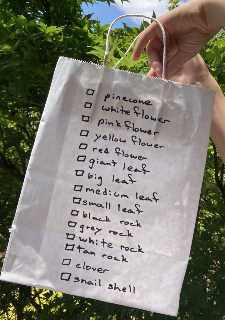 Or, try writing a checklist right onto a paper bag for your child to fill on the walk.