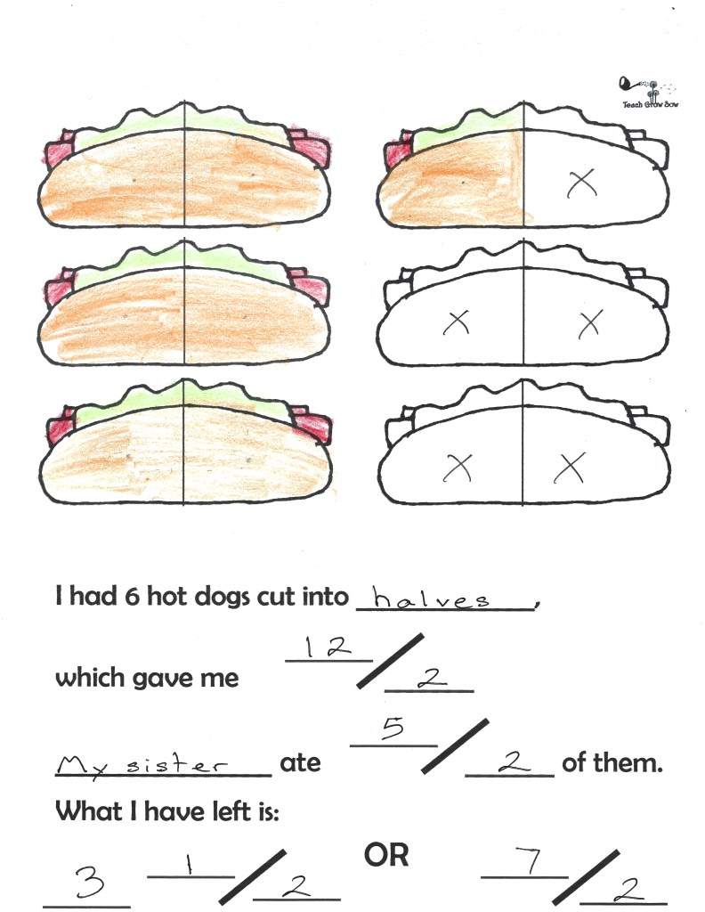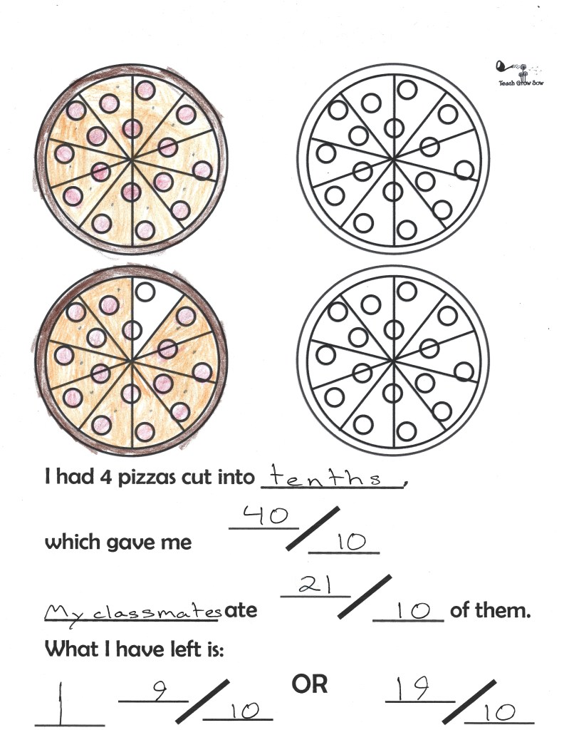 Use this project to wrap up a unit on fractions. Students choose an amount to be eaten that will leave a mixed number left over and color in the amount of food that is left over, crossing out the food that has been eaten.