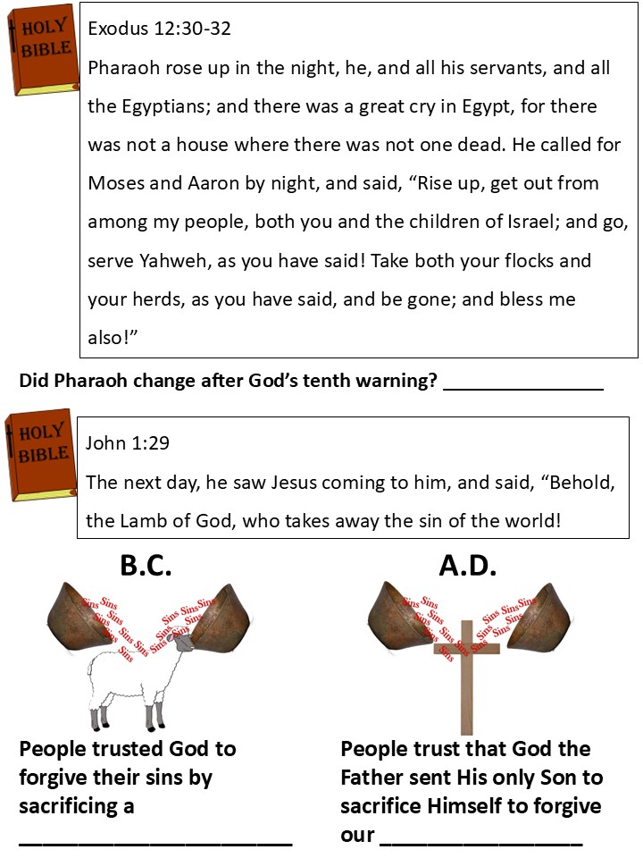 The Egyptians did not have the lamb’s blood on their doorposts and so God brought sorrow to their homes, but not to the homes of the Israelites. After all, it was not just the pharaoh who was hard-hearted. All the Egyptians had grown rich from the free labor of the Israelites. All were guilty of not standing up for what was right.