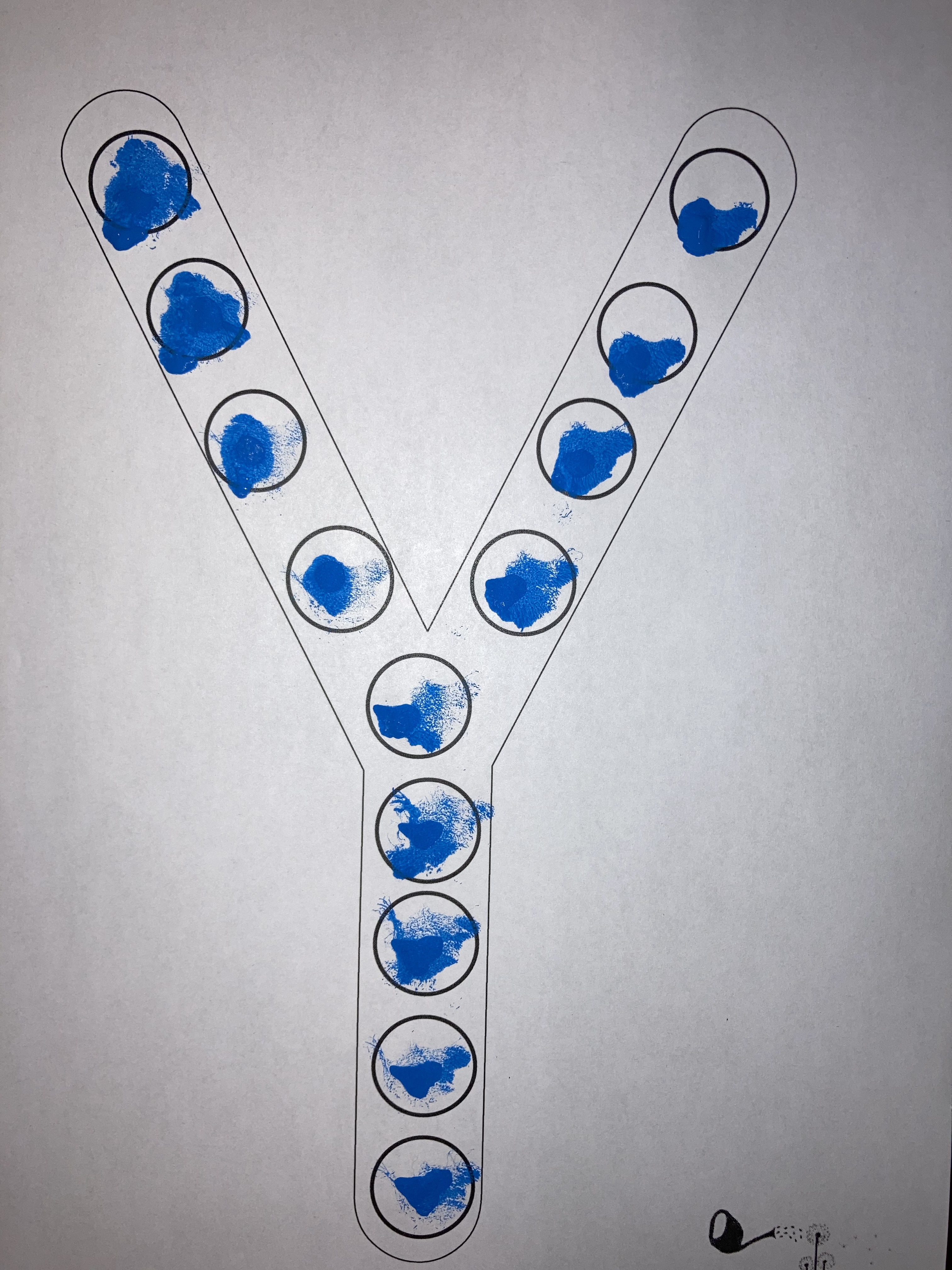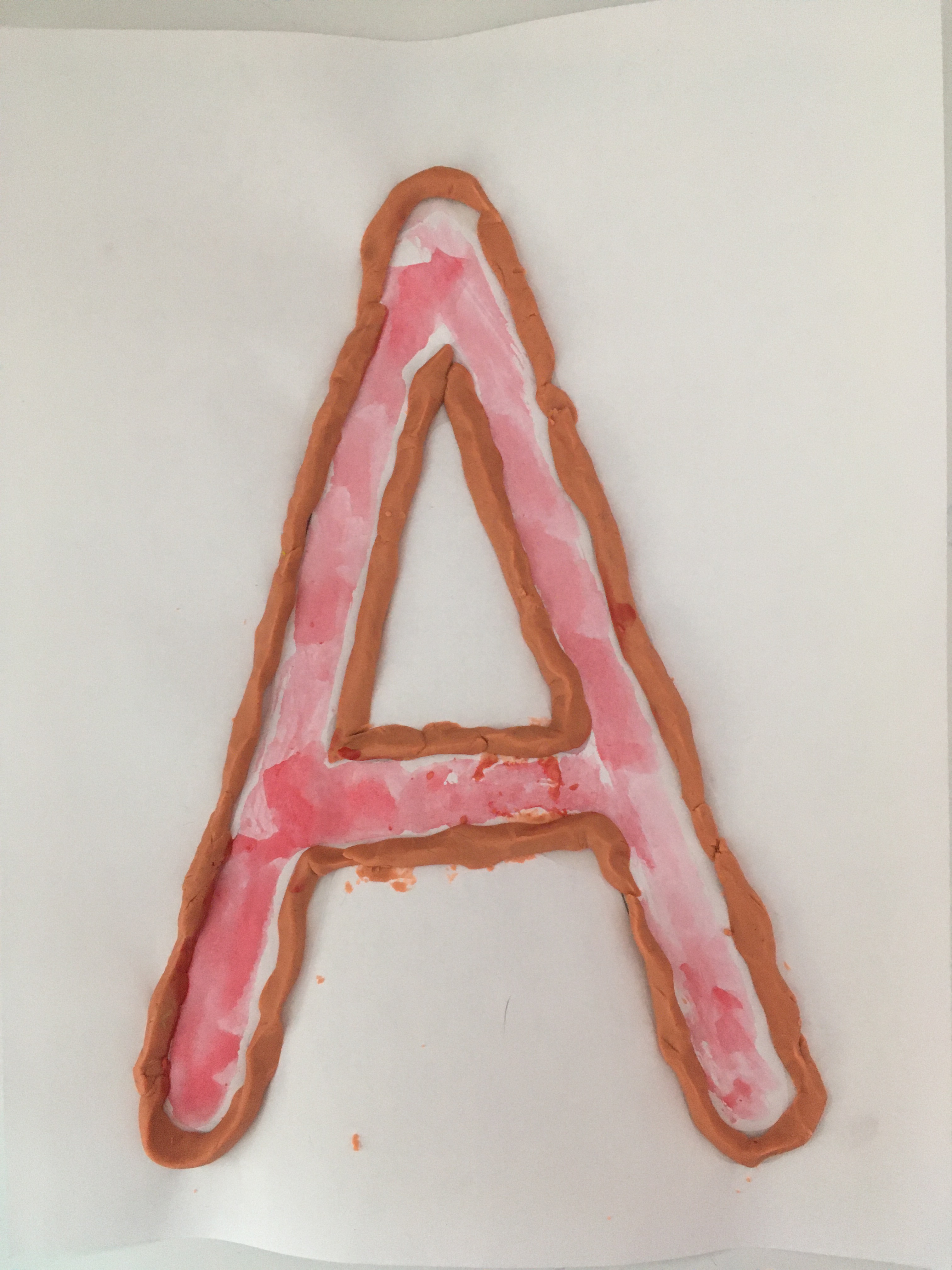 Create tactile alphabet pages for your child. Print the Capital Letter Outlines onto cardstock (preferably color) and have your child glue 3D objects onto each one (some letters are harder so may require multiple pictures of an object to glue on). Tape the pages onto your child’s bedroom or playroom wall as they are completed (masking tape generally holds well without ruining walls). Or, hang several sturdy strings with knots tied in them approximately every 10 inches and place clothespins on them.