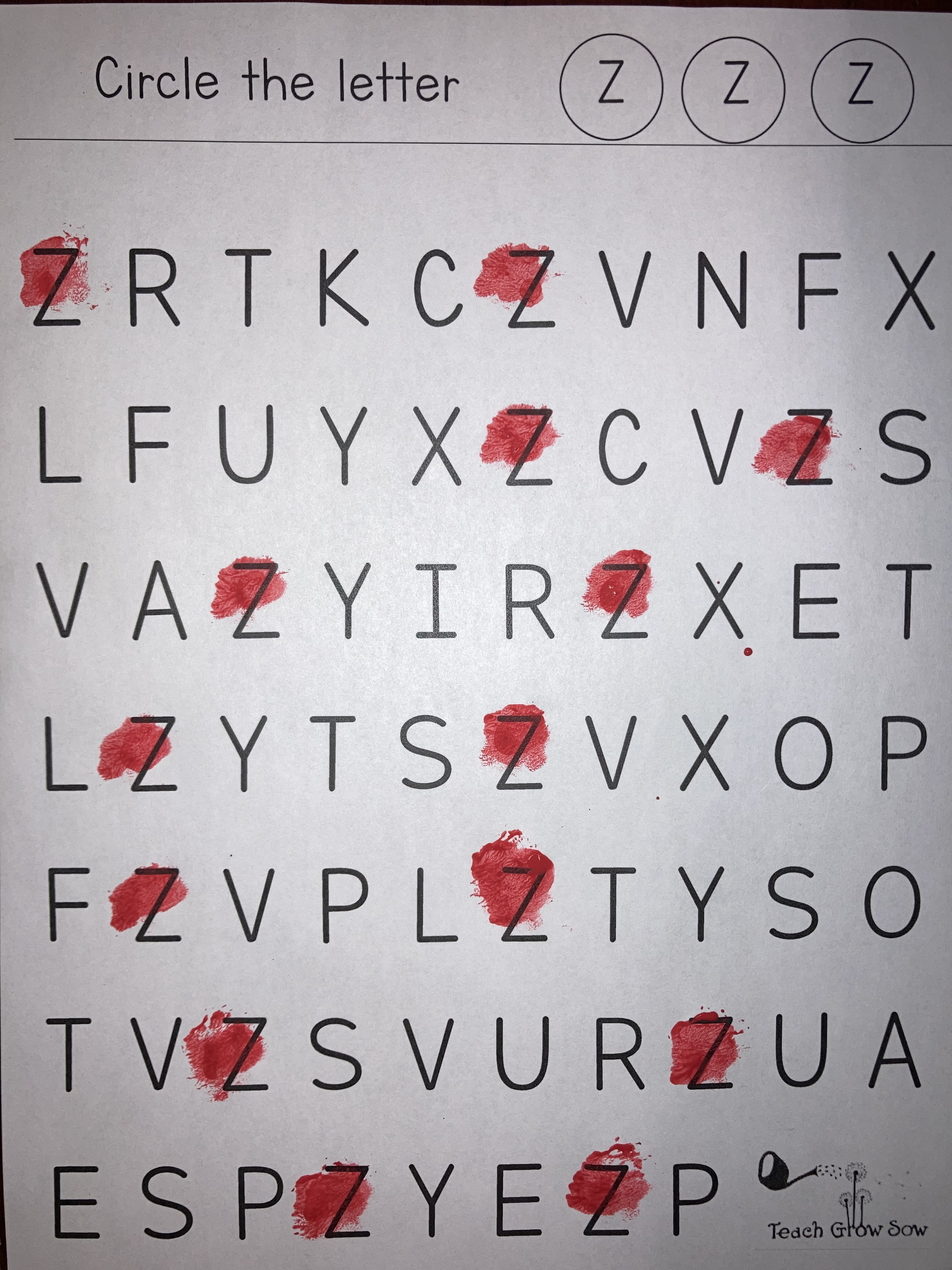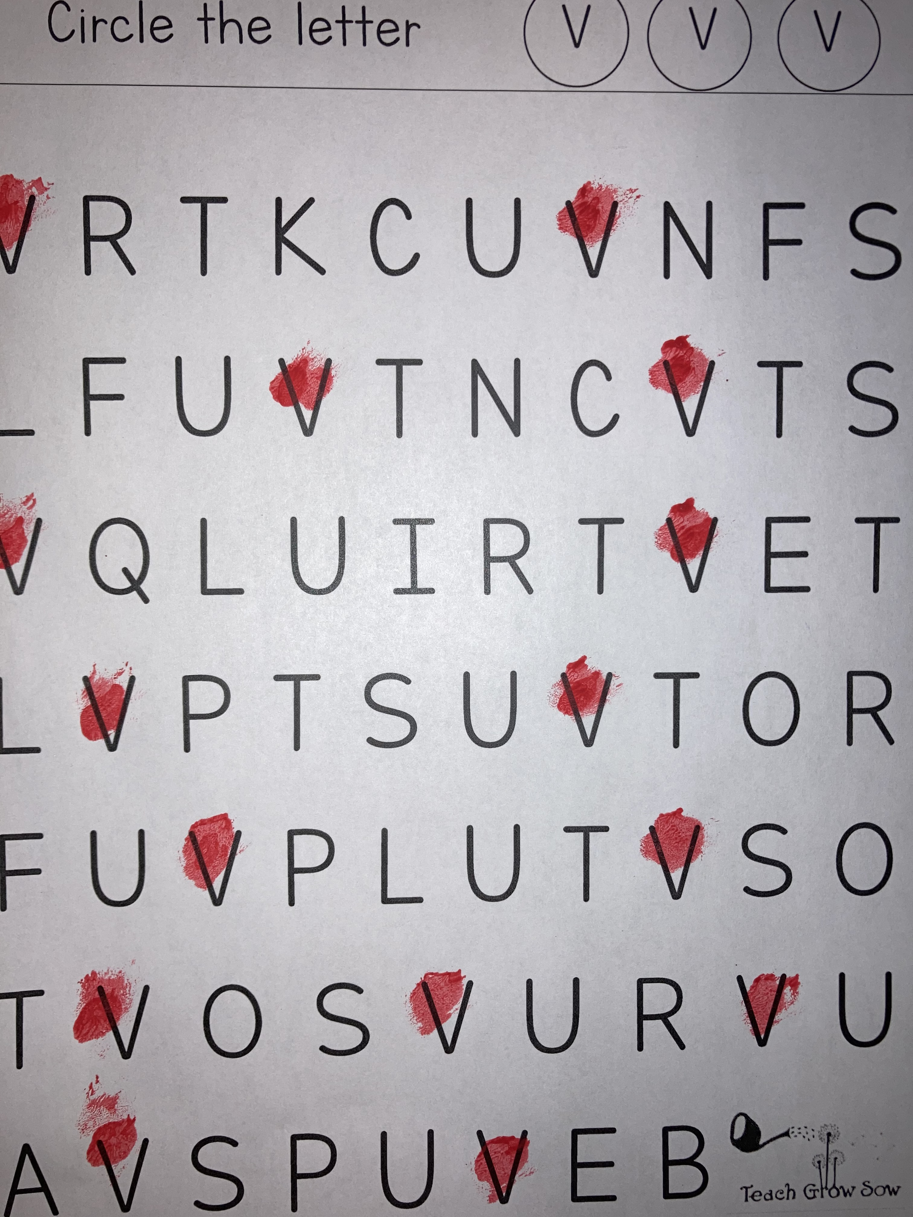 ❖Locate a named letter within a group of capital letters on paper or with toy letters (Where is W?)