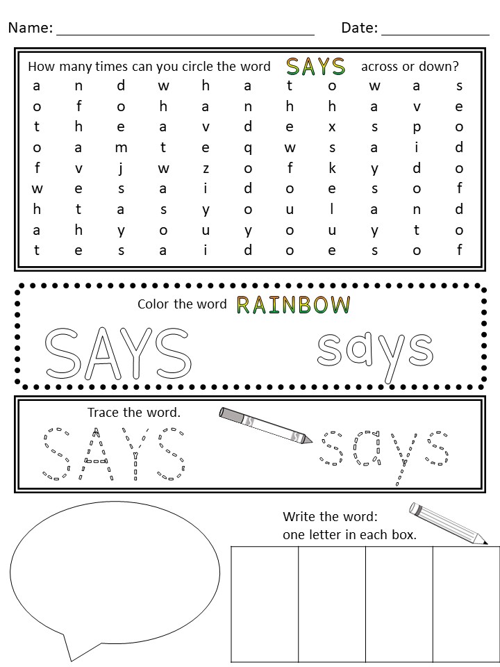Week 29-30: CH/Sight Word SAYS