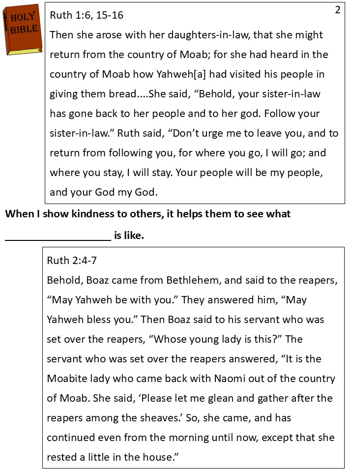 “You did a good thing coming to take care of Naomi,” Boaz replied. “You’re very brave to come to a new country. I heard how you have chosen to follow God and pray that He will bless and protect you.”