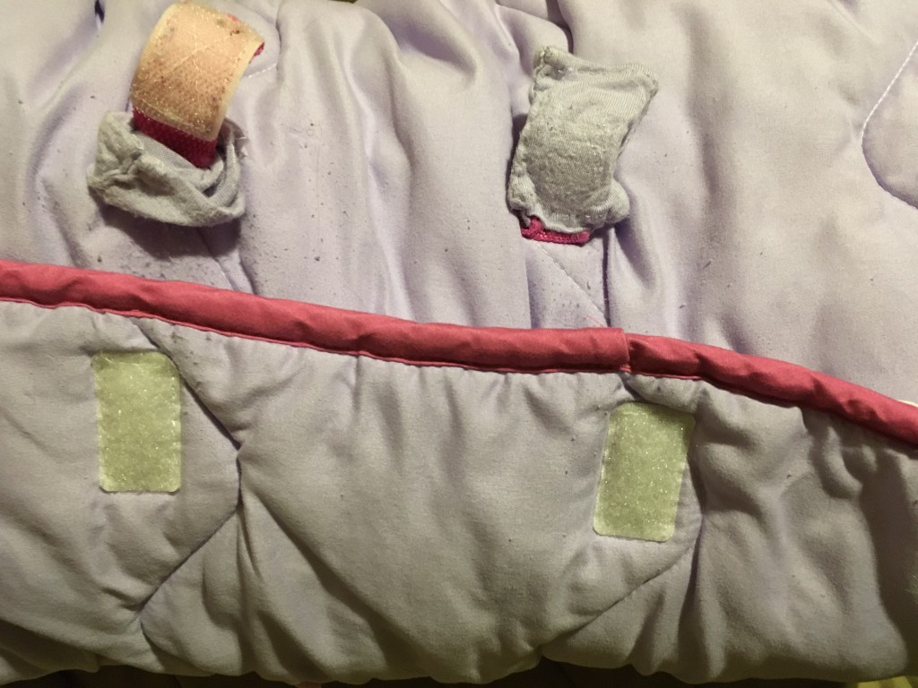 This is a great trick for any machine-washable item with Velcro flaps, but the first that comes to my mind are those pesky nap mats. The Velcro flaps destroy anything else in the laundry with it, snagging on the most delicate item of the wash. To fix this, find some spare fabric and cut a piece just double the size of the flap. Create a tube around the flap, sewing it at the bottom and around the side, so that it can be pulled back to let the Velcro attach, then covered when it needs to be washed.