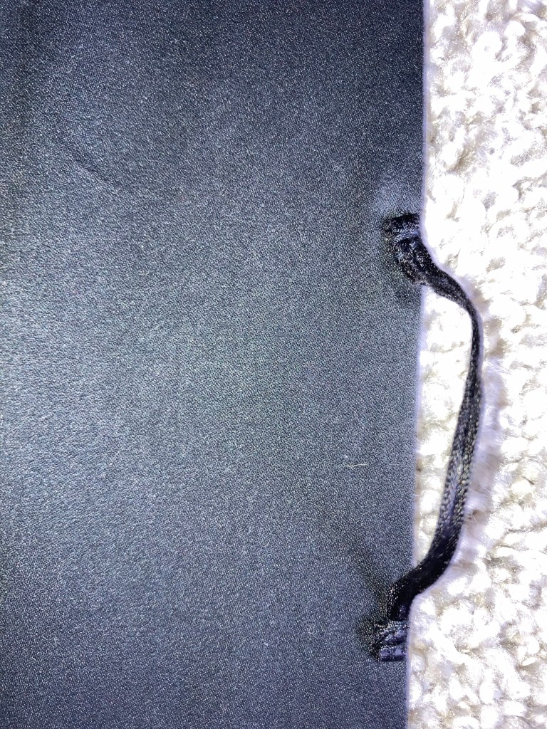 Step 1: Hold the fake pockets open as wide as you can make them go, so the thread is visible.