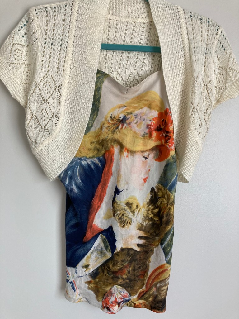 Either way, there is no need to dump your favorite dress because it no longer works as a dress. Simply cut the hem and turn it into your newest favorite top! You can choose a regular length or take advantage of the situation to have an extra-long shirt that works well paired with leggings.