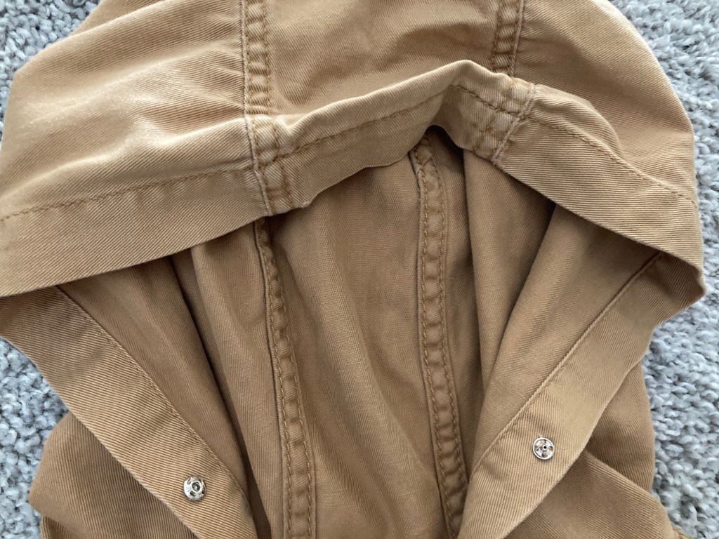Step 5: Find where the LEFT lapel is parallel to the waistline. Cut a two-inch slit at the seam of the lapel (where the label meets the rest of the robe-usually a couple inches in from the edge of the lapel). Sew each side of the seam back separately.