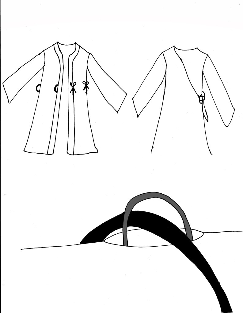 To keep the robe closed, pull the LEFT ribbon through the RIGHT slit, then pull the RIGHT belt of the robe through that ribbon.