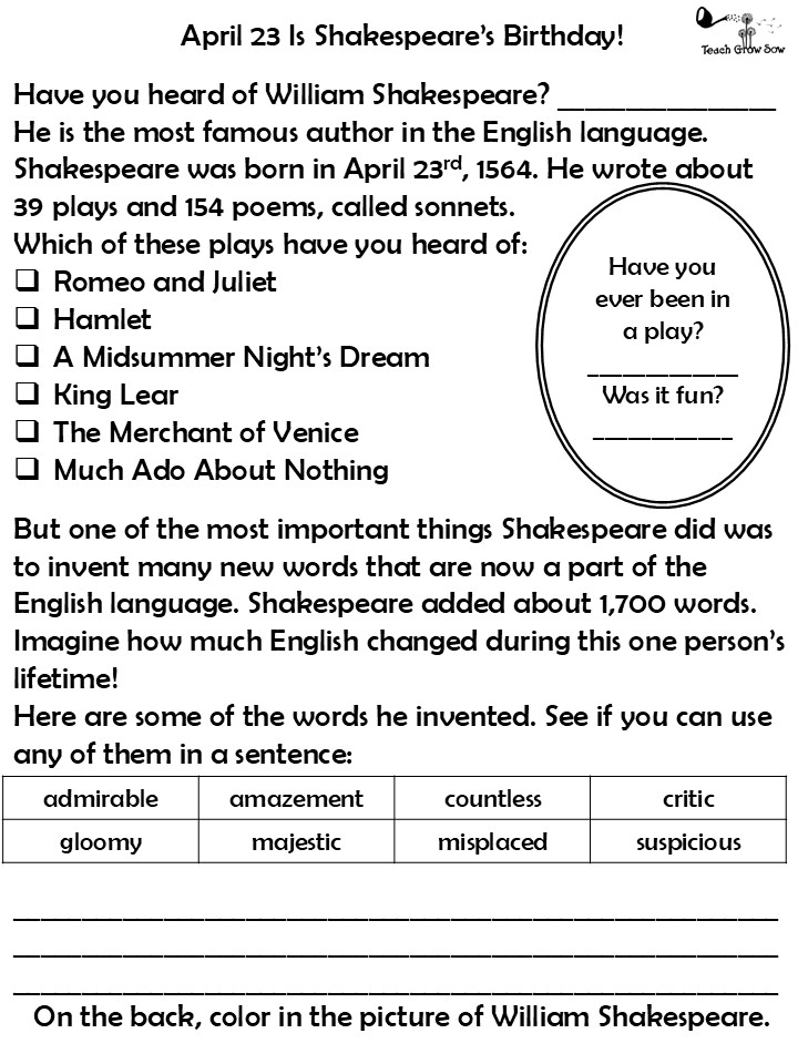 Shakespeare’s Birthday ShakespeareDownload Type your email… Subscribe Click here to sign up for notifications on Facebook, Instagram, Pinterest, and YouTube. Have questions or feedback? Email: teachgrowsow@gmail.com Share this:TweetLike Loading...