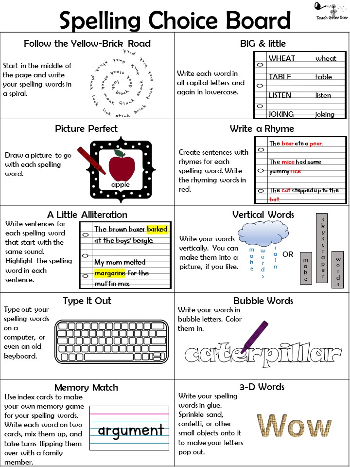 Use these fun activities to give children options for practicing their spelling lists independently.
