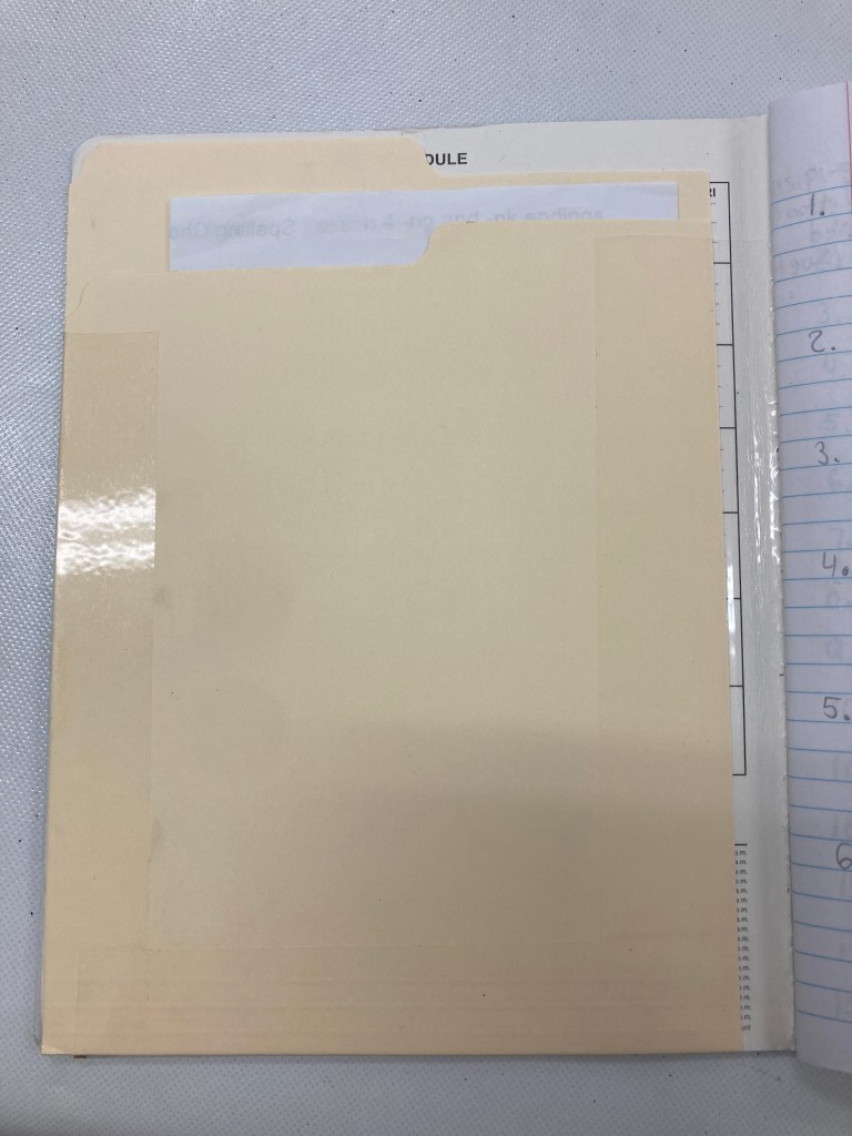 Do your students keep a weekly spelling list inside of a notebook where they write their spelling homework? You’re probably tired of them losing that list all the time because it keeps falling out. Just cut a manilla folder to the length of the notebook and tape it to the inside cover. Now, you have a perfectly sized pocket for the list when it’s folded in half.