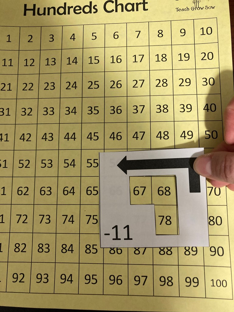 Use these arrow boxes with the hundreds chart to help children remember how to add and subtract 8, 9, 11 & 12.
