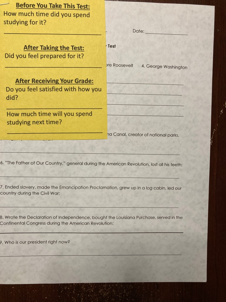 Want your students to develop a better self-awareness for studying? Print and cut out this page in four. Staple to the front of each test and have students develop the habit of filling it out before and after the test, and when they receive their grade.