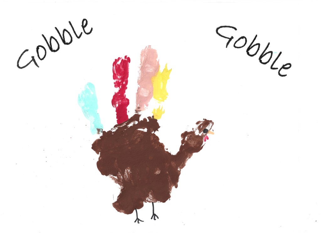 Grab a sponge and slice it into 1″ or smaller spears. Dip into different fall colors and make splotches on a half paper plate. Add a paper body, beak, and gullet to complete your turkey.