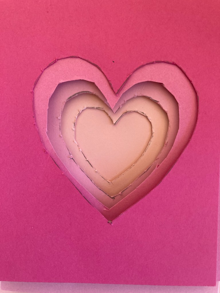 Cut out a heart from cardstock and place the outside border onto another piece of cardstock, taping the edges to keep it in place.