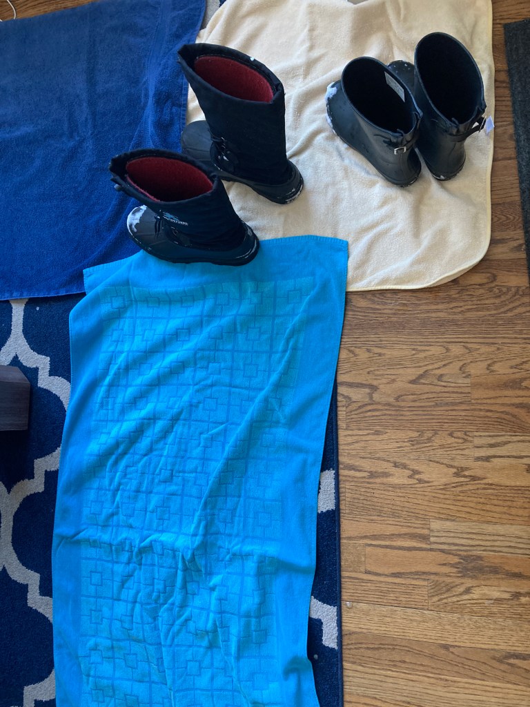If your children are constantly going in and out of the yard to play in the snow, set down lots of towels by your door for taking off boots.