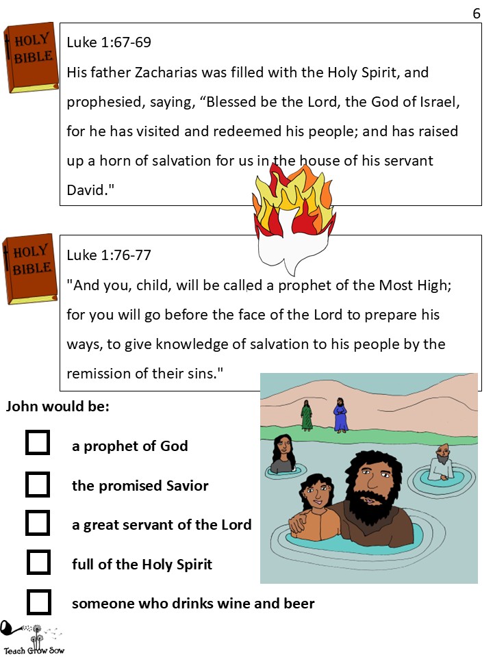 Then, turning to his newborn son, he blessed him, saying, “My precious boy, you will be called a prophet of God, delivering His messages from heaven. You will tell everyone about the Messiah. You will prepare their hearts. You will let people know they can come to God for forgiveness to have their sins washed away.”